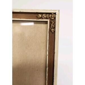 Vtg Ornate 8x10 Carved Rose Wood MidCentury Picture Frame Ivory Tan Brown