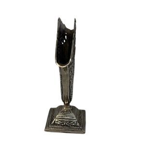 Vtg Ornate Art Nouveau Metal Fluted Flat Lattice Fan Vase w/ Pineapple