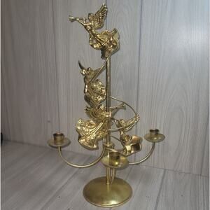 Vtg Ornate Gold Metal Angel Candelabra Candle Holder MCM Holiday Center Piece