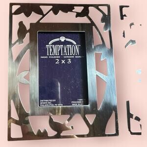 Vintage Ornate Silver Polished Art Picture Frames Easel 2x3 Set Bird Nature Trees