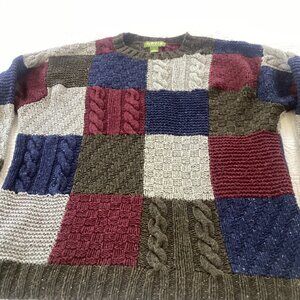 Vtg Orvis Patchwork Wool & Cashmere Blend Cable Knit Sweater XL Color Blocks