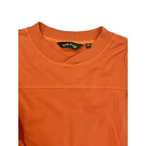 Vtg Orvis Rugby Shirt Men’s L Orange & Navy Reinforced Heavy Cotton Sweatshirt