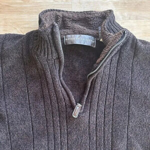 Oscar De La Renta Sweater Mens 2XL dark Brown Quarter Zip Fleece Lined Collar