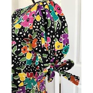 Vtg Oscar De Larenta Studio Pleated Silk Dress Floral Print Size 12 (runs Small)