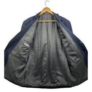 Vtg Oscar de la Renta Blazer Jacket Mens 46R Navy Wool 2-Button Gold Crest Buttons