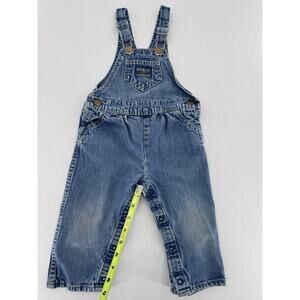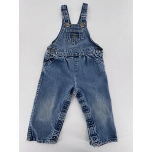 Vtg Oshkosh Overalls Vestback Sz 12m Denim Snap Blue Pockets