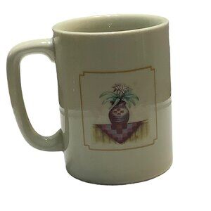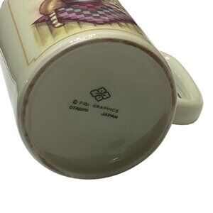 Vtg Otagiri Japan Tabby Kitty Cat Patchwork Quilt Flower Plant Tea Cup Mug 3.5