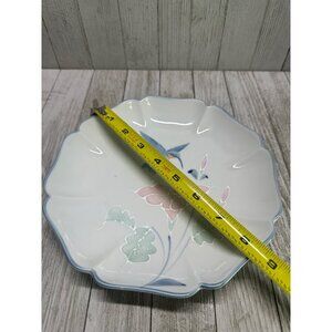 This vintage Otagiri plate features an elegant octagonal shape with a lotus and bird design. The blue trim enhances its classic appeal, making it a perfect addition to any collection or decor.
