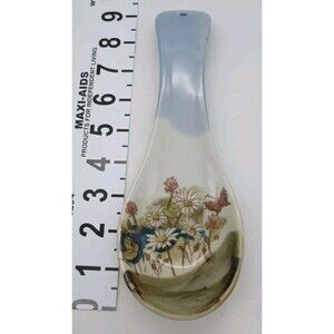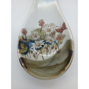 Vtg Otagiri Spoon Rest Flowers Butterfly Daisies Brown Blue Hand Painted Clover