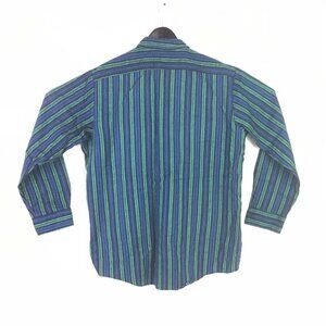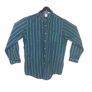 Step into timeless outdoor style with this vintage Outdoor Exchange flannel shirt in bold blue and green stripes, crafted for both comfort and durability. Designed in an XL Tall fit, this shirt features a classic button-front closure, single chest pocket, and button cuffs, making it perfect for layering or wearing on its own. Made in Hong Kong of 100% acrylic, it showcases quality vintage construction with a rugged yet casual aesthetic.