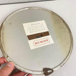 Has a good amount of dents in the metal and the arrow. Works though. Dimensions in pics. Cool print of horse drawn carriage in front of home..