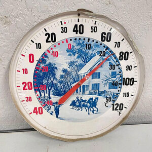 Vtg Outdoor Thermometer Mid Century Modern MCM Currier & Ives Round Metal Wall