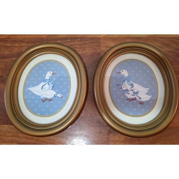 Vtg. Oval Geese Print Homco Frames and Decor 8"