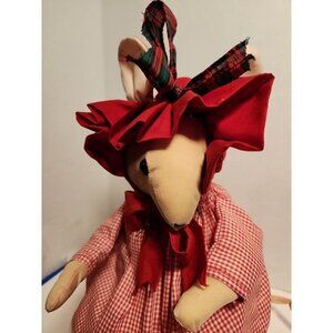 Vtg Overly Raker Christmas Plush Mrs Mouse Red Dress Stuffed & Weighted EUC