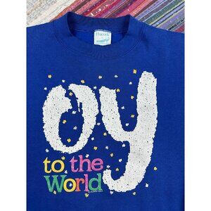 Vtg Oy To The World Sz Large Peacock Papers Pullover Unisex Holiday Sweatshirt