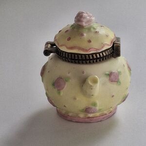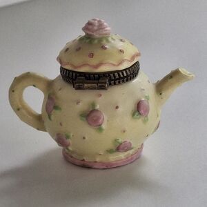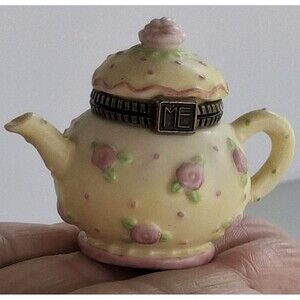 1999 Vintage PHB Midwest Of Cannon Falls Tea Pot Trinket Box. No chips or cracks. Please see the photos for the description and the condition.