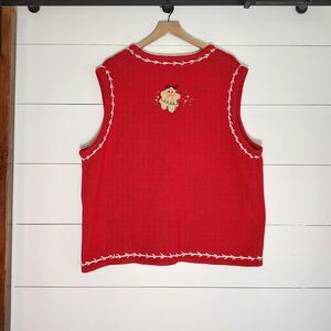 Vtg Planet Company Women's Christmas Sweater Vest With Beading and Embroidery Size 3X