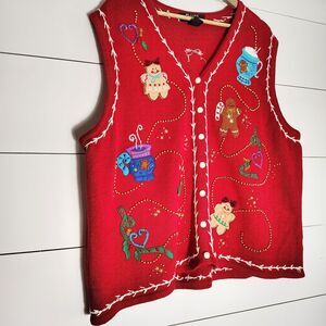 Vtg PLANET COMPANY Christmas Sweater Vest 3X Embroidered Gingerbread Beaded