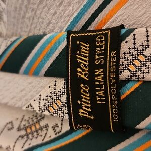 Vtg PRINCE BELLINI Striped Gray and Teal Clip-on Tie
