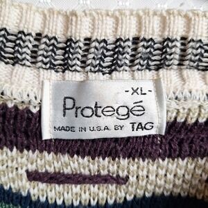 Vtg PROTEGE 3-D Knit Crewneck Sweater Sz XL Multi Cosby Pullover Y2K 90s Hip-Hop