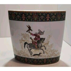 Vtg PT Tirschenreuth Bavaria Cavallo Oval Vase/Planter Man on Horse with Dog
