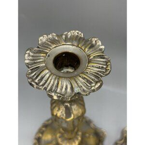 Vtg Pair Heavy Large Ornate Metal Candlesticks Antique Gothic Neo Style 10.5” H