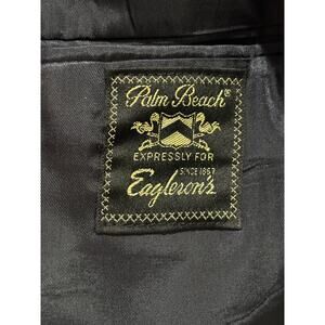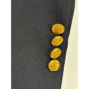 Review measurments The product is a vintage Palm Beach navy blue hopsack blazer jacket, made of wool with gold contrast buttons. This classic style blazer is perfect for a business occasion, featuring a notched lapel, single vent, and inner pockets. The jacket has a timeless design suitable for winter, fall, and spring, with a regular length and a flat front. Made with high-quality material, this blazer exudes a sporty yet sophisticated look, ideal for the preppy, office, or career-themed wardrobe.
