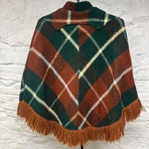 Vtg Panhandle Slim Poncho Wool Blend(?) Boho Western Plaid Full Zip Shawl Fringe