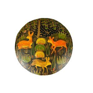 Vtg Paper Mache India Hand Painted Trinket Jewelry Box Deer Woodland Animals