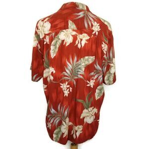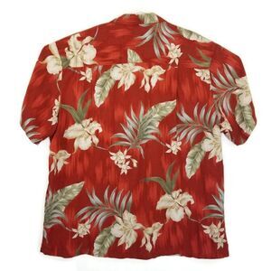 Vtg Paradise Found Mens XL Red Rayon Floral Button Up S/S Hawaiian Shirt USA
