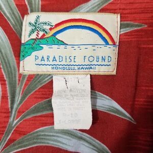 Vintage Paradise Found Mens Size XL Red Rayon Floral Button Up Short Sleeve Hawaiian Shirt USA