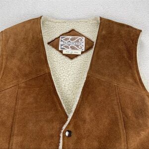 Vtg Pardners Western Suede Leather Vest Sz 44 Sherpa Lined Ranch Chore Minty EUC