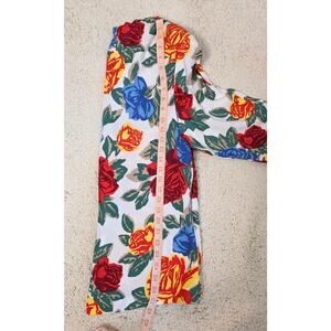 ILGWA Union Made in the USA. 90% rayon, 10% flax, machine wash warm. 20" armpit to armpit, 21" long sleeve, 27" long. Grandma core, Grandma Chic, Cottage core, Multi color, Whimsical, Floral, Classic, Vacay, Travel, Elevated Basic.