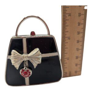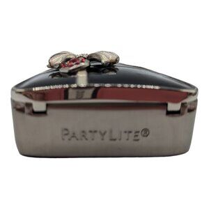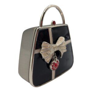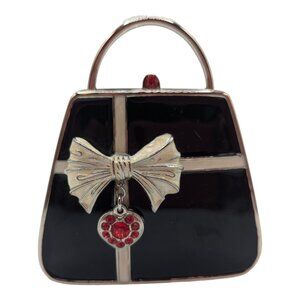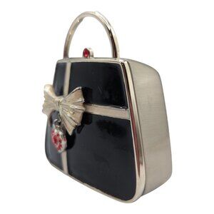 Vtg Partylite Black Purse Tealight Holder With Bow & Red Gem Charm Trinket Box