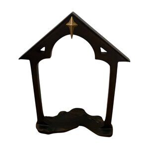 This nativity scene holder by Partylite provides a beautiful and elegant display for Christmas decorations. Crafted from durable metal, it features a sleek, modern design with a gold star accent. Ideal for adding a touch of Christmas spirit to your home decor.