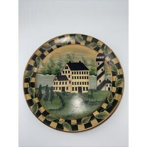Vtg Pat Fischer Primitive Folk Art Hand Painted Plate Lighthouse Scene Signed
