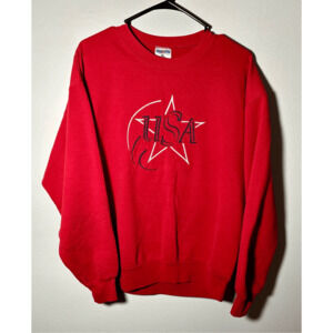 Vtg Patriotic “USA” America 4th of July Red Crewneck Pullover Sweatshirt Sz L