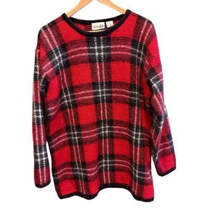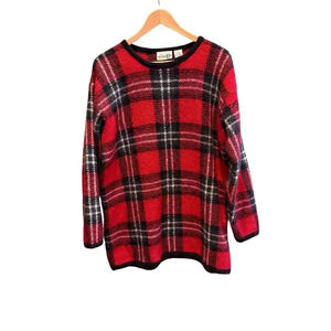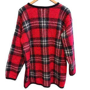 Vtg Paul Harris Design Tartan Check Mohair Blend Holiday Christmas Tunic Size L