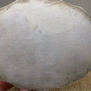 The product is a vintage Paul Revere coffee pot made of silverplate by Lunt silver. The coffee pot features a design inspired by the famous American patriot Paul Revere, known for his role in the American Revolution. This post-1940 piece of hollowware does not have a California Prop 65 warning, making it a unique and collectible addition to any collection of silver antiques.