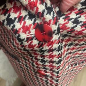 Vtg Paul Stanley Red Black Houndstooth Blazer Sz 10 Long Jacket Double Button