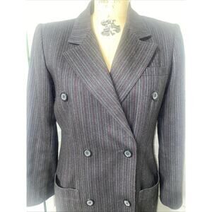 Vtg Peabody House Women’s Wool Gray Striped Lined Jacket Dress Sz Medium