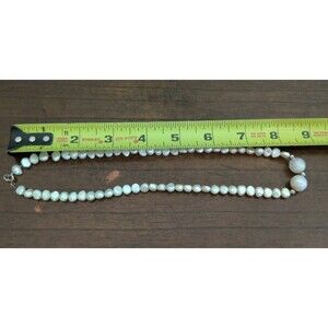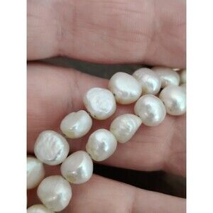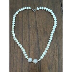 This vintage freshwater pearl necklace features a signed sterling silver clasp and 2 glass beads, giving it a unique and charming look. The cream-colored freshwater pearls are strung with a beaded style, making it a versatile piece that can be worn for various occasions. With a necklace length of 18 inches, this vintage jewelry is a timeless and elegant addition to any collection.