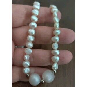 Vtg Pearl Freshwater Necklace 925 SILVER Clasp Signed 2 Glass Beads ~18"