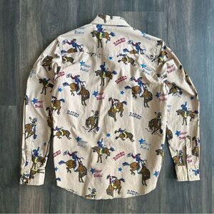Vtg Pearl Snap Wrangler Button Up Kids Sz XL Rodeo Bronco Western Cowboy Graphic