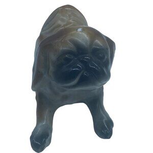 Handcrafted in Japan, this vintage ceramic pug figurine adds a touch of charm to any collection or decor with its finely detailed craftsmanship.