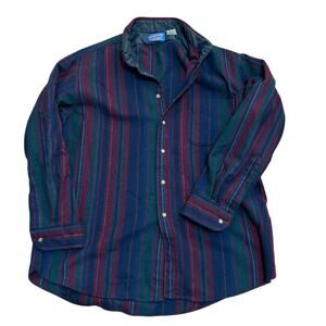 Vtg Pendleton 100% Virgin Wool Flannel Button Down Shirt Large Blue Red Stripes