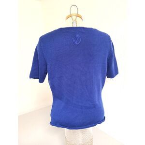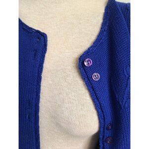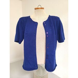 Vtg Pendleton Embroidered Blue Button Short Sleeve Granny Cardigan MEDIUM Bright