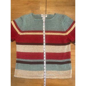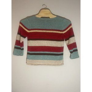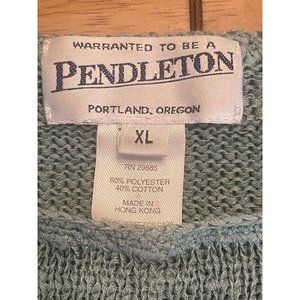 This colorful striped Pendleton sweater is a must-have for any casual occasion. Made of tight-knit cotton fabric, it features a round neckline, long sleeves, and a pullover style. The sweater is in excellent used condition and fits women's XL size.