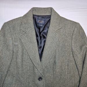 VIntage Pendleton Womens Old Money Preppy Classic Academia Davis Herringbone Tweed Virgin/ Lambs Wool Blazer 4 Petite Green