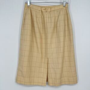 Vtg Pendleton Wool Silk Blend Skirt 10 Petite Pale Yellow Check Pocket Y2K USA